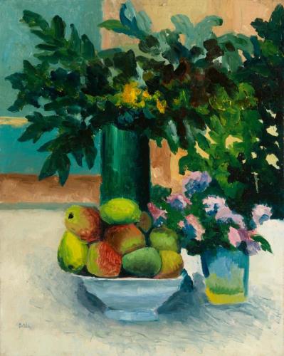 34 Orbán Dezső: Csendélet almákkal és virágokkal, 1910 körül