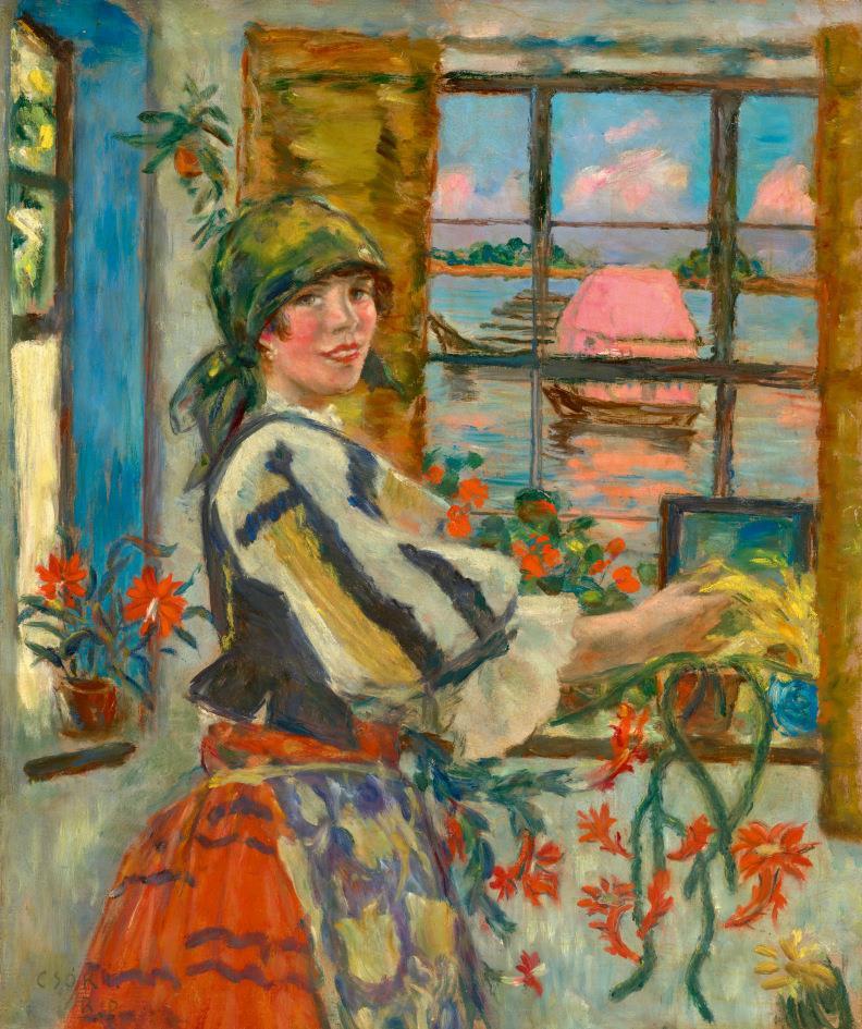 94 Csók István: Fiatal lány kaktusz virágokkal (Kilátás a Dunára)