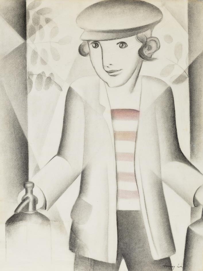 182 Szücsy Lili: Pajeszos kisfiú szódásüveggel, 1929 körül