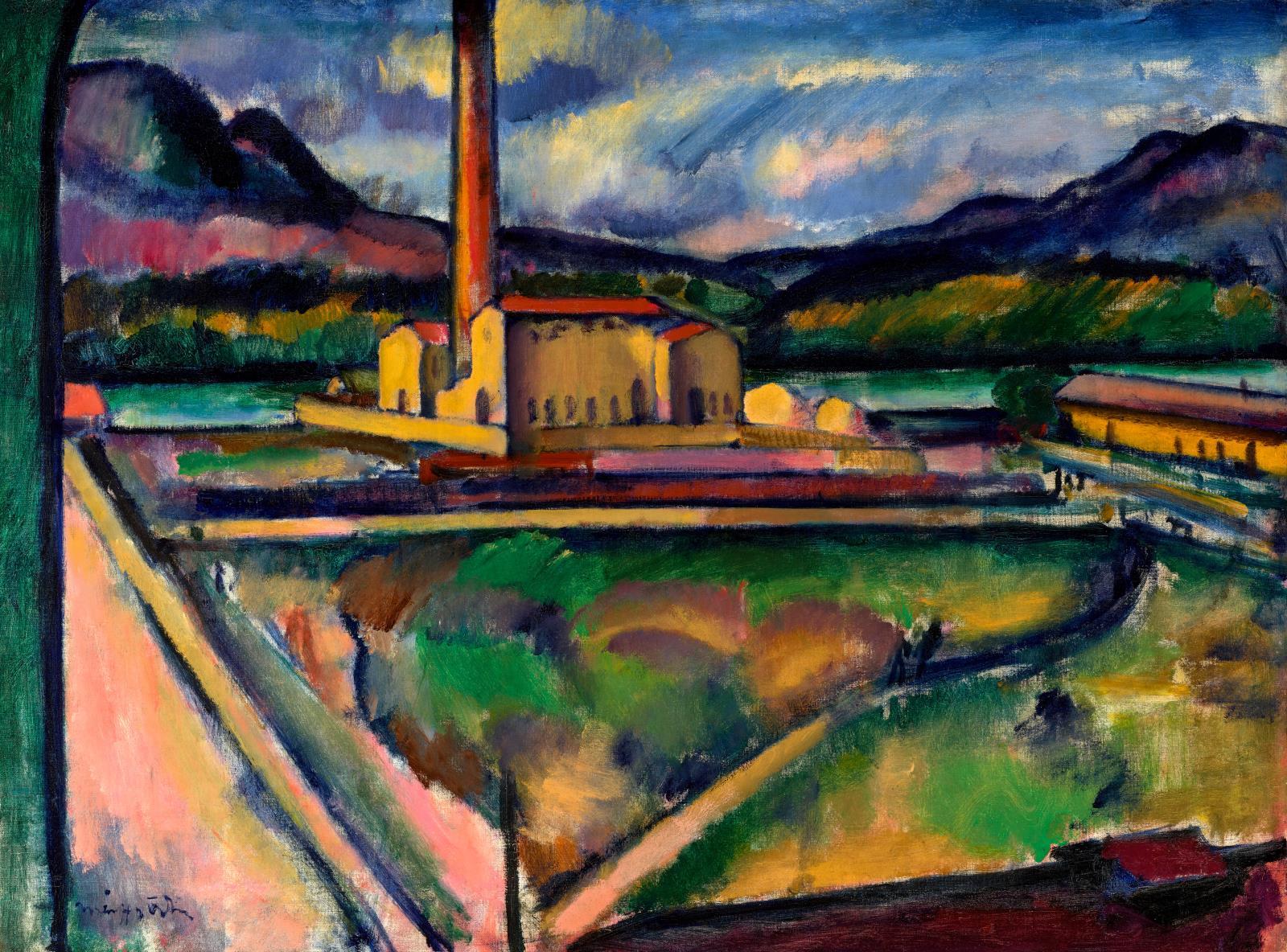 82 Márffy Ödön: Zebegény, Lelátás a műteremből (Táj kéménnyel, Zebegényi téglagyár), 1910 körül