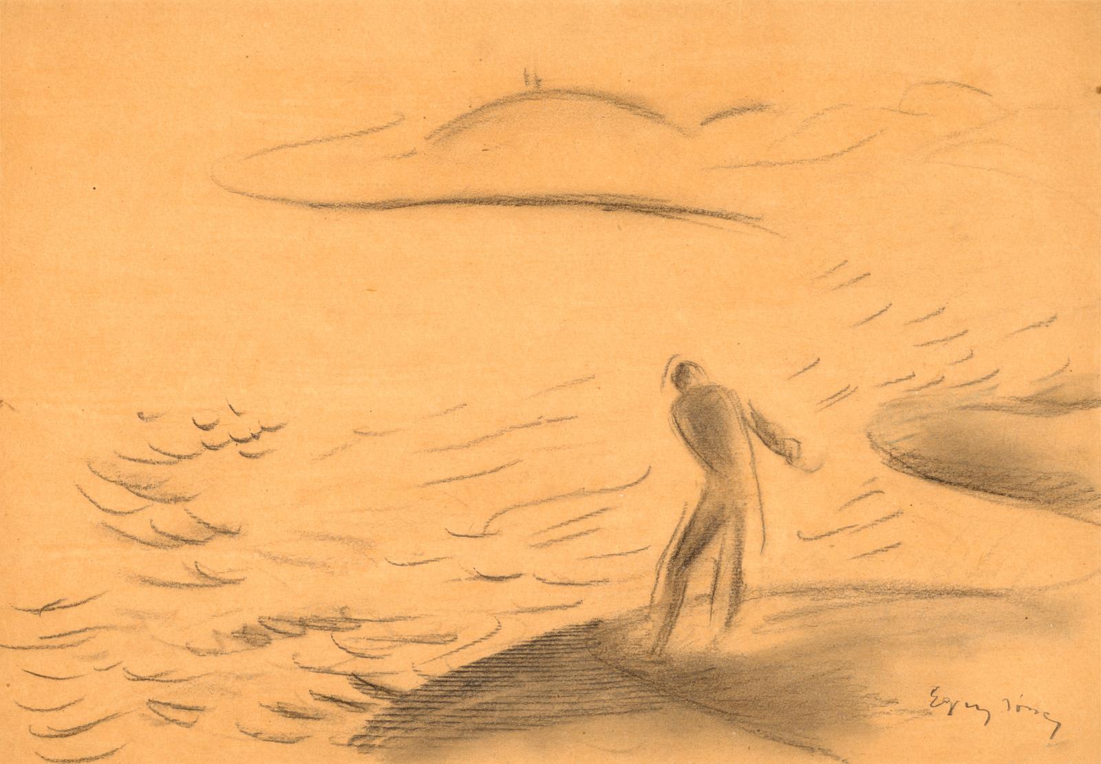 37 Egry József: Halász a Balatonnál (Hálóvető)