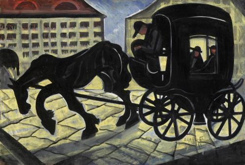 122 Scheiber Hugó: Fiáker macskaköves úton, 1930-as évek második fele
